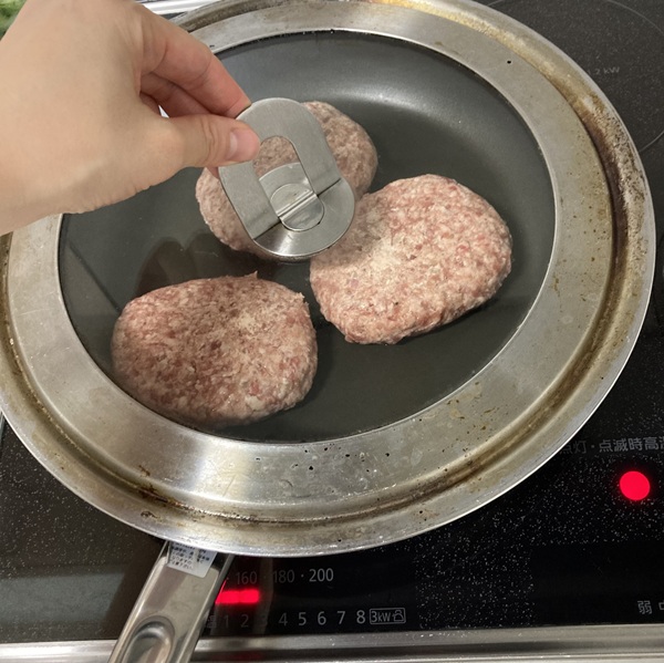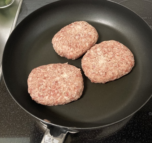 ともるの生ハンバーグは、冷凍庫から出して解凍する必要がなく、凍ったままフライパンで焼いていきます。