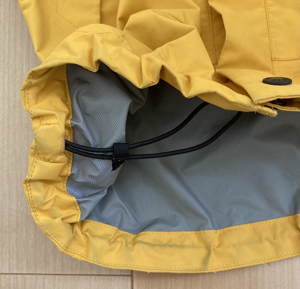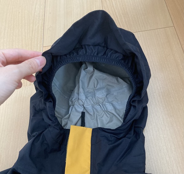 フードは調整はできないのですが、端がゴムになっているので、風が強くてもフードが外れない仕様になっています。