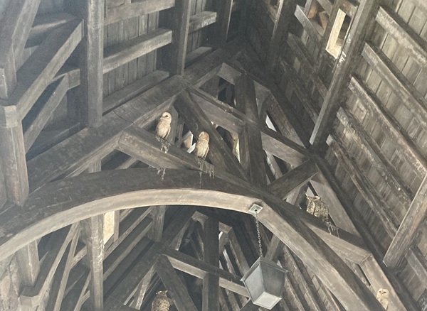 屋根に止まっているフクロウ達が郵便を届けてくれるそうです。