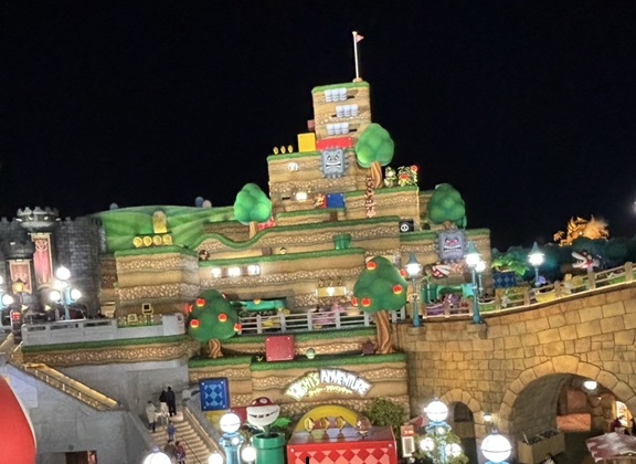 マリカーを乗り終えたらもう外は暗くなっていて、夜のマリオエリアはライトアップもありさらに良い!