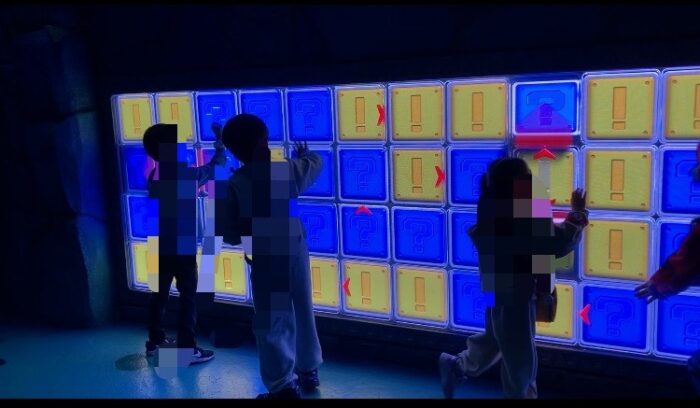 通路にあるオブジェやポスターがマリオの世界を再現されていて見ごたえがあるので、待ち時間も写真を撮ったり眺めたりで、結構あっという間。